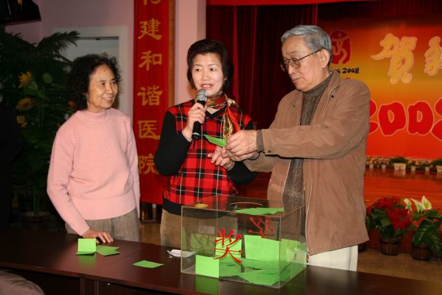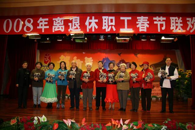为鼠年的职工颁发纪念品