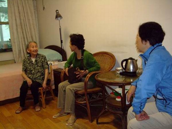 老党员常荣芳,现年92岁,是医院目前年岁最大的老护士。老伴去世已30多年。当常老看到医院昔日的老同志前来探望,非常高兴,不停地倒茶、拿水果和点心给大家吃。看到90多岁高龄的常老身体健康、生活自理,大家都非常高兴。
