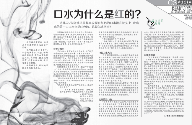 下一篇: 【北京日报】警惕急性坏死性牙龈炎(2014年6月20日19版)