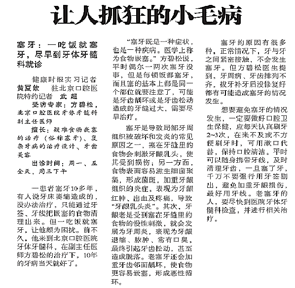 上一篇: 【北京晚报】功能牙膏不能替代口腔治疗(2014年9月26日第51版)