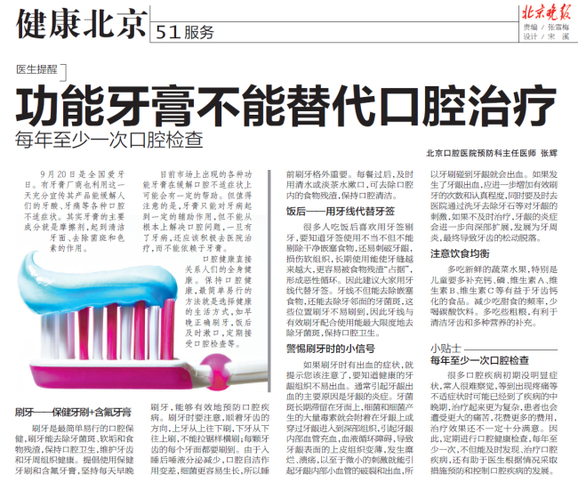 上一篇: 【京华卫生】唇齿间的“私人定制”(2014年9月25日第8期第1版)