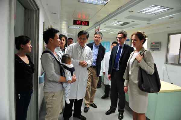 2014年4月17日,国际牙科研究学会(IADR)主席Helen Whelton和执行主席Christopher H. Fox及北大口腔医院工作人员一行3人来我院参观访问。郑东翔副院长、厉松副院长及科研处江青松处长、研究所汤晓飞主任、范志朋副主任、院办吴洪儒主任热情接待了外宾。