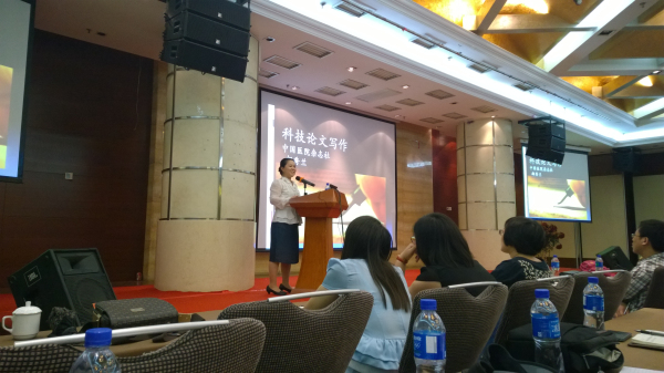 培训由《中国医院》杂志社郝秀兰总编主讲,郝老师从事编审工作20余年,见解独到,经验丰富,她向与会人员介绍了科技论文写作中的选题与创新、文献检索和处理工具的使用、如何获得好的idea、构思与撰文等内容,还详细讲解了文章的选题、题目的拟定、摘要的提炼、关键词的选取、正文的结构、图表的应用和参考文献的格式等具体写作技巧,为管理论文的撰写提供了指导性意见。