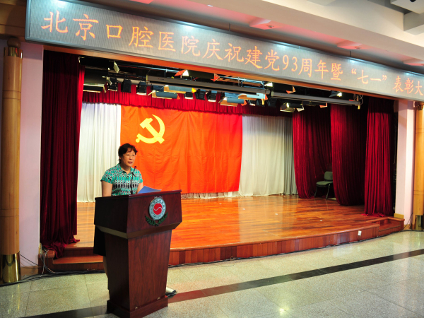 2014年6月25日,北京口腔医院党委在多功能厅举办了庆祝建党93周年暨七一表彰大会,医院领导班子成员、中层干部、工会分会主席、共产党员、入党积极分子等百余人参加了会议。会议由院党委副书记刘淑敏同志主持。