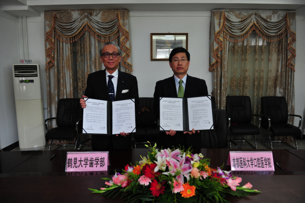 近日,北京口腔医院举行了与日本鹤见大学齿学部合作协议的签字仪式。北京口腔医院院长白玉兴、鹤见大学齿学部学部长小林馨作为代表签署了合作协议。鹤见大学副理事长落合一恵、鹤见大学齿学部事务长黒井和男、大久保力廣教授,北京口腔医院副院长郑东翔、副院长厉松及修复科主任温颖、种植科主任谭包生参加了签字仪式。