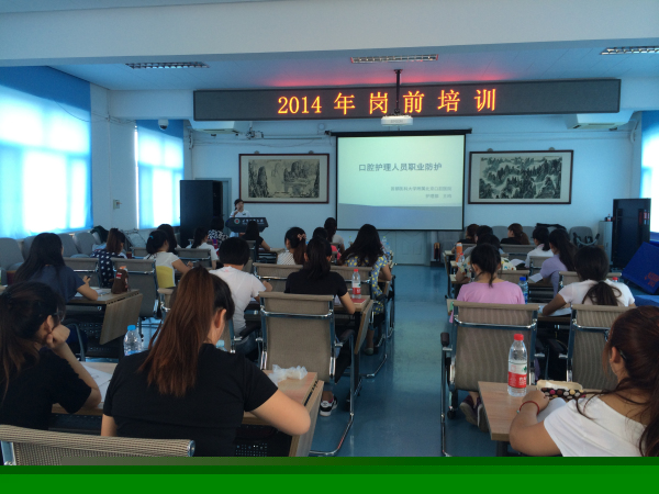 专业培训课程是护理部根据医管局关于《开展护士规范化培训》的文件精神重新修订制定的,内容涵盖了口腔内科、口腔外科、口腔修复、口腔正畸、儿童口腔科等各专业领域的疾病知识、护理技能,并增加了口腔科设备使用及口腔放射知识的讲座。大部分课程由各科医生及护士长授课,科室教学老师负责操作技能培训。操作项目培训以专科护理技能为主,基础护理技能为辅,包括磷酸锌水门汀调拌技术、藻酸盐印模材调拌技术、血压测量技术、无菌技术,以及心肺复苏配合简易呼吸器技术。护理部还组织新入职护士到主要专业科室见习,学习接诊流程,熟悉口腔科常用器械、材料等,以便进入科室后尽早顺利开展工作。