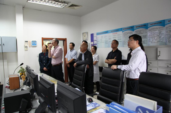 随后白玉兴院长和张振庭书记一行对重点科室、重点部位进行了检查。在锅炉房、气泵房,院领导询问了设备运行情况、安全操作规程,要求健全规章制度,加强应急演练,做好工作记录;院领导一行在研究所重点查看了液氮、菌种存放情况,要求严格按照国家保存标准办理,确保生物安全,完善实验室消防、水灾应急预案;院领导还查看了装修、调试完毕的病房楼419机房,询问了安全保卫措施,就烟感问题与保卫处协商;在中控室查看医院各部位实时监控情况时,白院长和张书记指出工作人员务必熟悉医院各个部位,完善交接班记录,提高警惕,切实做好安全监控工作,确保安全的医疗、工作环境;在教育处检查时,院领导查看了装修完毕的学生宿舍,提出要加强安全管理,开展应急演练。