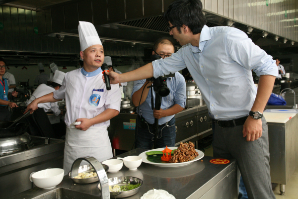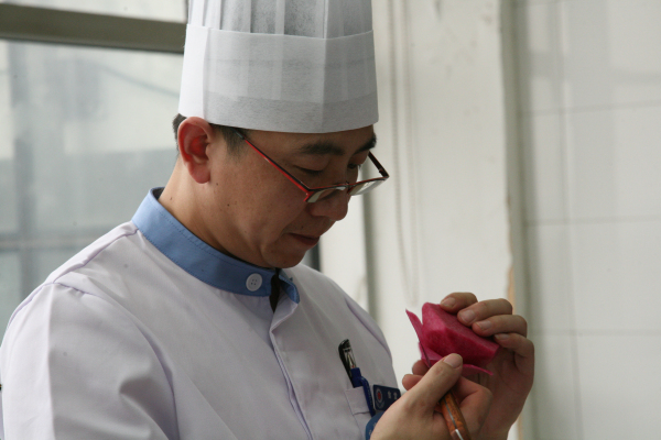 北京口腔医院选拔推荐了郭琳杰、米伟、苗玉忠三位师傅代表医院参赛。竞赛包括笔试和实操两部分,在圆满完成笔试后,师傅们即投入到了实际操作环节。一番精心烹饪之后,顺利完成了“尖椒土豆丝”、“银芽鸡丝”和“荤、素包子”规定菜品的制作。在制作自选特色菜和点心时,北京口腔医院的“竹影马鞍桥”和“荷花酥”菜肴造型刚刚摆出,就引得媒体争相拍照和采访直播,赢得观众一致好评。