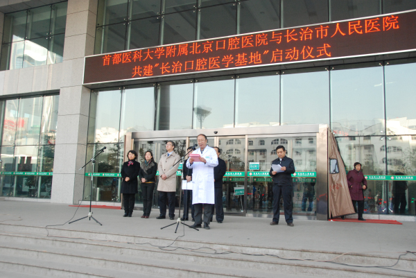山西医科大学附属长治市人民医院是一家集医疗、预防、保健、教学、科研于一体的三级甲等综合医院。协议签署后,北京口腔医院将根据当地需要不定期选派专家到对方医院进行学术交流及技术指导;优先安排对方派送的医务人员进修学习;建立绿色转诊通道,对疑难复杂病例及时派出专家会诊;双方可合作申请科研项目,北京口腔医院专家将对其提供技术指导,协助对方在临床开展应用新技术、新疗法等。