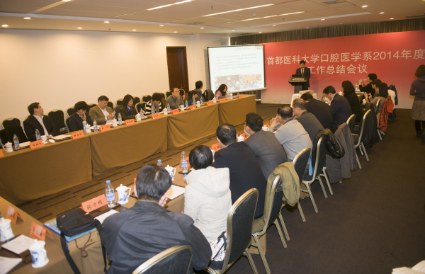 2014年12月14日,首都医科大学口腔医学院组织召开了首都医科大学口腔医学系2014年度工作会议。会议由首都医科大学基地办公室副主任李爱军主持。参加会议的有首都医科大学副校长王晓民,第二届首都医科大学口腔医学系主任、副主任、系务委员会全体委员;首医大基地办和学系办工作人员。