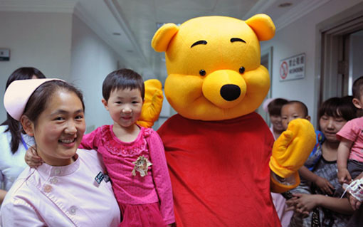 随着悠扬的音乐,憨态可掬的“维尼熊”踩着欢快摇摆的步伐,来到各个病房与孩子们一起玩耍、拍照。整场联欢会分为“爱的鼓励”、“风雨同行”、“许愿未来”、“成长纪念”四个部分。我们的医护人员与孩子、家长们一起互动做游戏、表演节目,为孩子们送上了精心准备的节日礼物,每个人的脸上都充满了幸福的喜悦,在联欢会的最后,所有的人一起分享了节日的蛋糕,大家在欢快的气氛中渡过了一个快乐的儿童节。