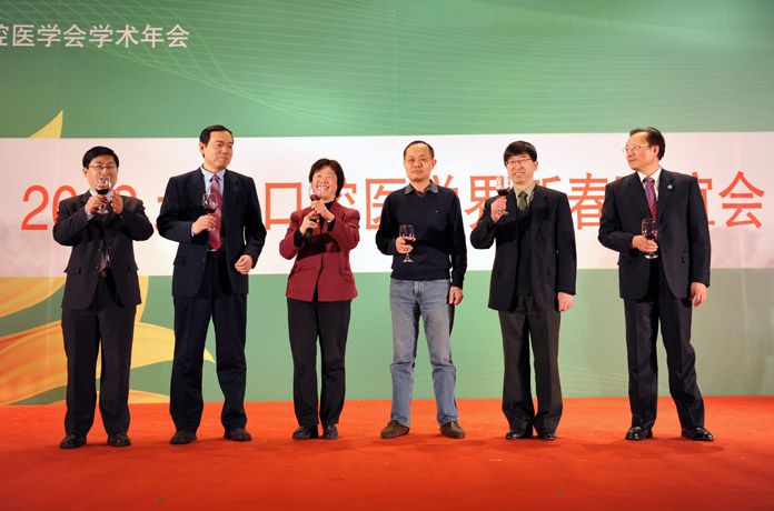 北京口腔医学会举办新春联谊会,孙正会长携学会其他领导给大家祝酒。