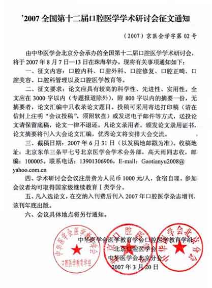 下一篇: 关于举办全国口腔医学新进展学习班的通知
