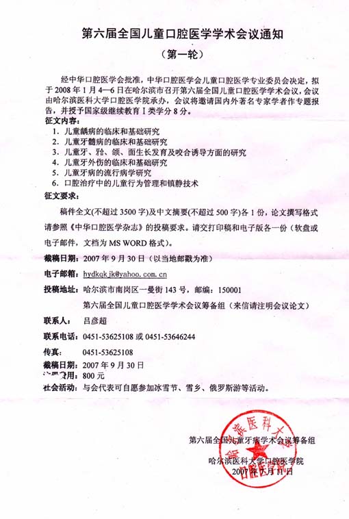 下一篇: IADR中国分会第八届年会暨第七届全国中青年口腔医师学术研讨会通知