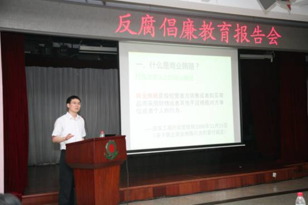近日,北京口腔医院举办了廉政教育报告会,邀请中纪委驻国家卫生计生委陈旭光副主任做了题为《医药购销领域商业贿赂有关问题介绍》的专题报告。会议由纪委书记刘淑敏主持,党委书记张振庭等院领导和各科室主任、护士长、支部书记以及财务、库房管理等重点岗位人员约90人参加了会议。