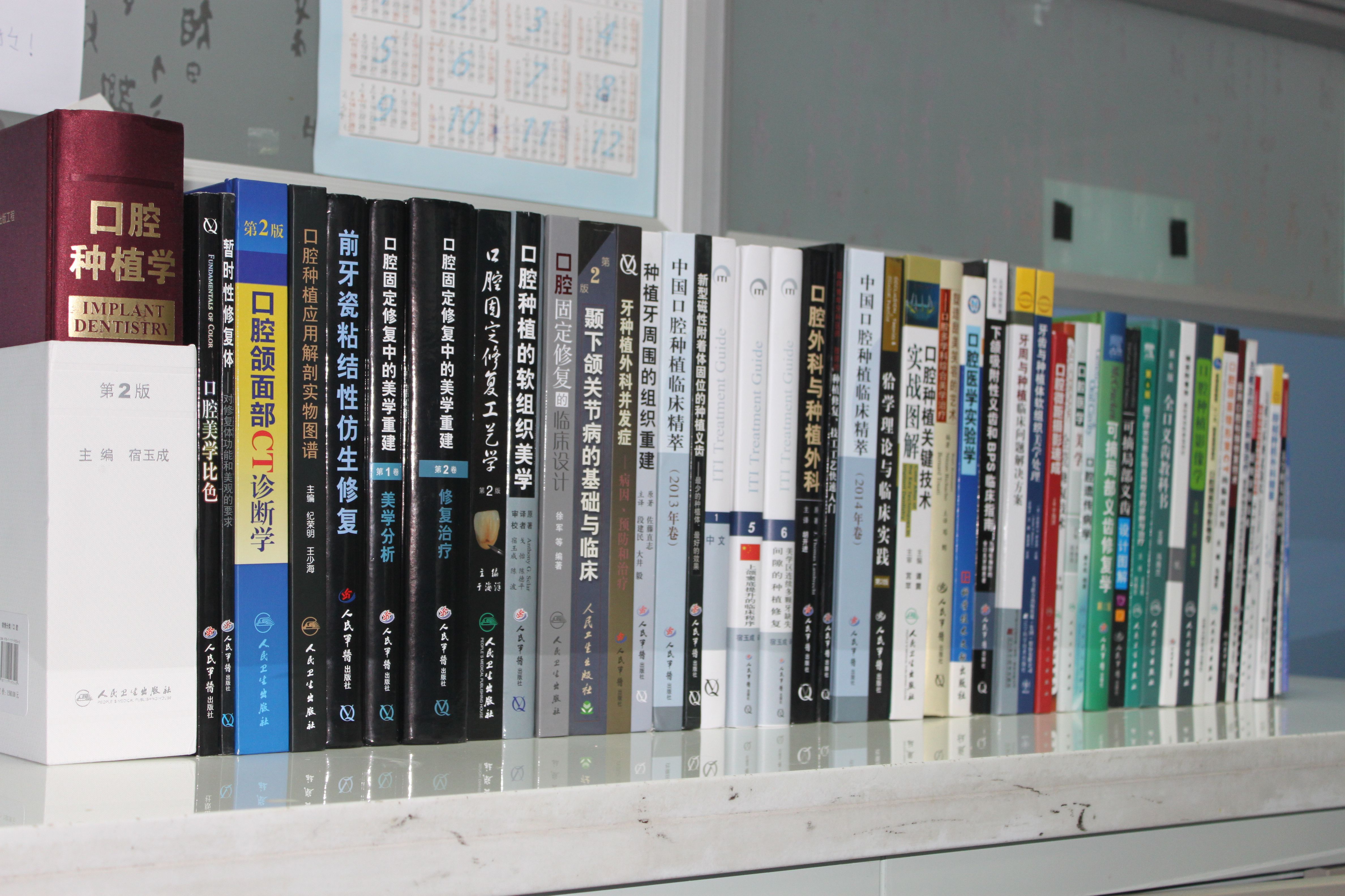 近年来,口腔修复科不断开展新技术与新疗法,如CAD/CAM技术、种植技术、前牙美学贴面技术等。新技术的开展不但提高了科室技术水平,也对大家的专业能力提出了更高的要求。全体修复医生对新技术的学习都表现出了极大的热情。为此,在院党委的大力支持下,修复支部特意从党费中抽出一部分经费,根据临床医师、技师、护士的要求,分别从人民卫生出版社、人民军医出版社等订购了大约50余册最新出版的专业书籍,内容涵盖修复、护理、种植、放射等各个临床学科。大部分书籍均是近两年翻译自外文的原版经典教材,具有很高的学术价值和实用性。