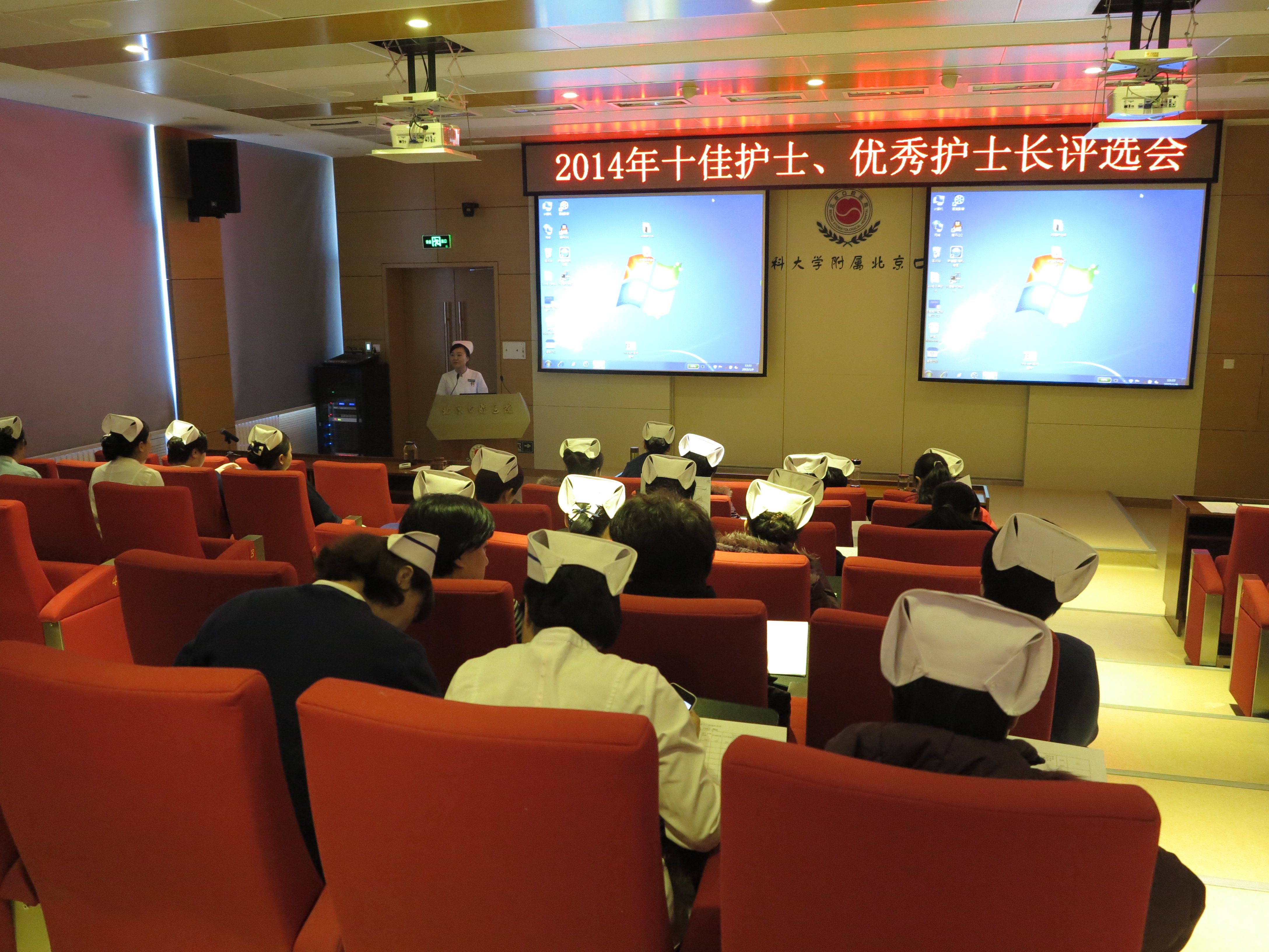 全体护士长作为评委为候选人员打分,打分成绩与经过审核的初评成绩相加,评选结果现场统计并公布,共评选出2014年度“十佳护士”10名,优秀护士长3名。