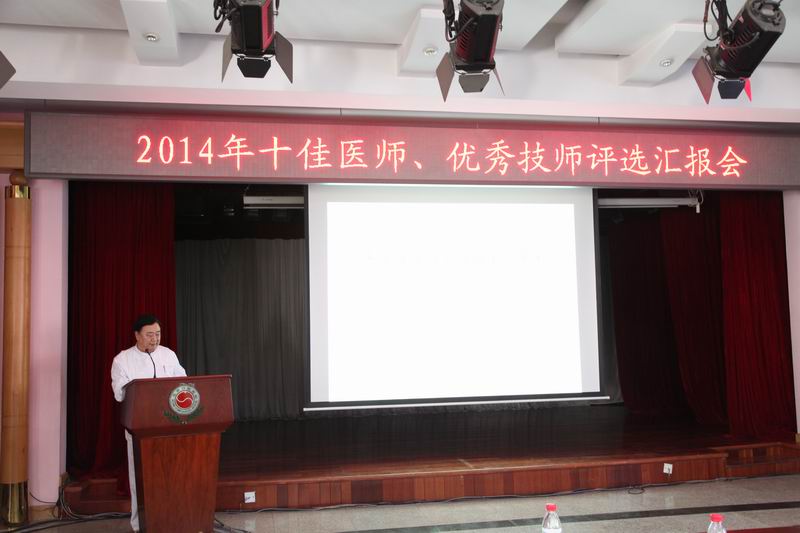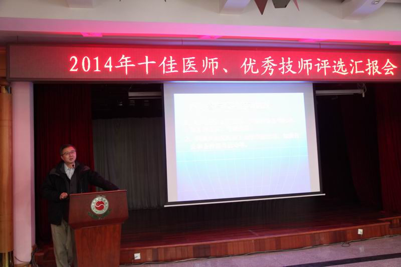 最后,厉松副院长进行了总结发言,他首先向当选的十佳医师和优秀技师表示祝贺,对参加汇报的所有候选人一年来的工作给予了充分肯定。在活动组织形式方面,厉院长希望各科室主任和医师能够多提一些意见和建议,使本项活动从形式到内涵能够得到不断完善。
