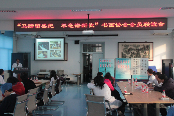 2015年1月28日下午,北京口腔医院书画协会在门诊楼五层职工之家举办了以“马蹄留盛纪,羊毫谱新歌”为主题的会员联谊会。院党委书记、书画协会会长张振庭,院党委副书记、工会主席刘淑敏出席了联谊会。部分分会主席和学生会书画社代表也参加了活动。