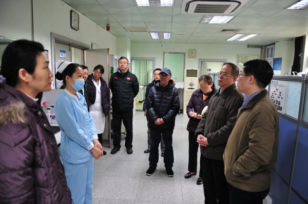 白玉兴院长、张振庭书记一行先后来到了急诊科、教学楼、配电室、食堂、气泵房、锅炉房、研究所、病房419机房、中控室,检查临床医疗、设备运转、安全防范情况,叮嘱在岗职工加强安全巡视,落实责任到人,同时工会、食堂要做好节日期间在岗职工的饮食保障工作,让大家度过一个安乐祥和的春节。