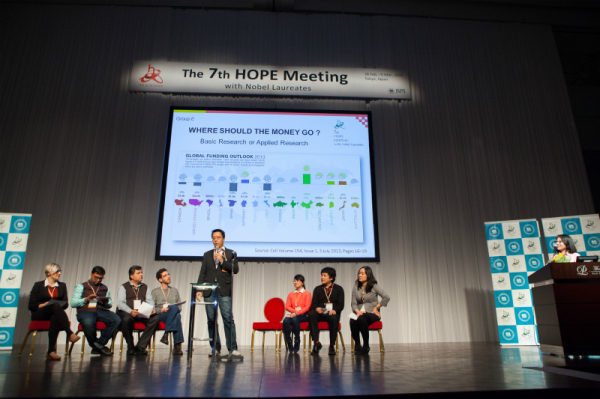 Hope Meeting(希望会议) 是2007年开始由日本科学振兴会(JSPS)举办的旨在推进亚太及非洲地区科学技术的发展与交流以及培养这些地区的青年科学研究者的大会,中国共有10位博士及博士后受邀参加此次会议。希望会议期间,来自这些地区的青年研究者通过大会报告和小组讨论等多种方式与诺贝尔奖得主们进行了面对面的交流。