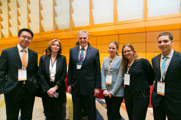此次会议期间5位诺贝尔奖得主分别介绍了自己的学术成果,他们包括2014年诺贝尔生理医学奖得主Kazutoshi Mori教授; 2011年诺贝尔化学奖得主Dan Shechtman教授;2010诺贝尔化学奖得主Ei-ichi Negishi教授;1996年物理诺贝尔奖得主Douglas Dean Osheroff教授;1987年物理诺贝尔奖得主Johannes Georg Bednorz教授。大会期间5位教授与其他多名诺贝尔奖得主教授共同参加了各青年学者小组的小组讨论并进行了面对面指导。胡景超医师在大会开幕日就“牙周再生治疗的研究进展与临床应用“做了大会报告,在大会闭幕式与本小组成员共同就”基础科研与临床应用研究的关系“做了专题大会报告。
