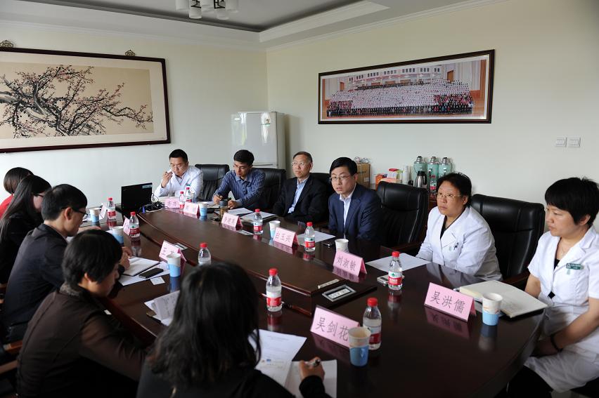 随后王荃副院长简要介绍了昆明医科大学附属口腔医院的情况。昆明医科大学1997年成立口腔系,2006年口腔医院建成,目前正在建设新院。此次来北京口腔医院交流,重点是探讨绩效考核和医院管理相关工作。