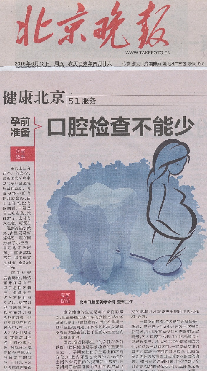 【北京晚报】孕前准备 口腔检查不能少(2015年6月12日第51版)