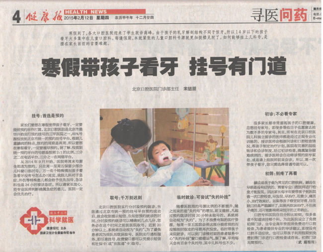下一篇: 【北京晚报】看牙前该做哪些准备(2014年11月28日第51版)