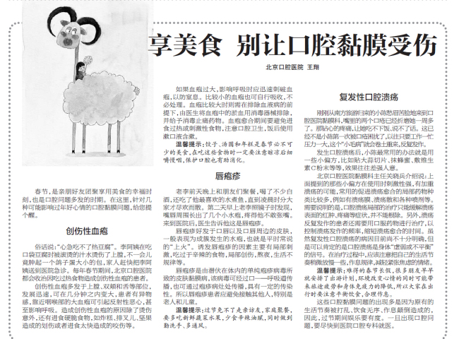 上一篇: 【北京晚报】享春节美食 还要注意口腔健康(2015年2月13日第50版)