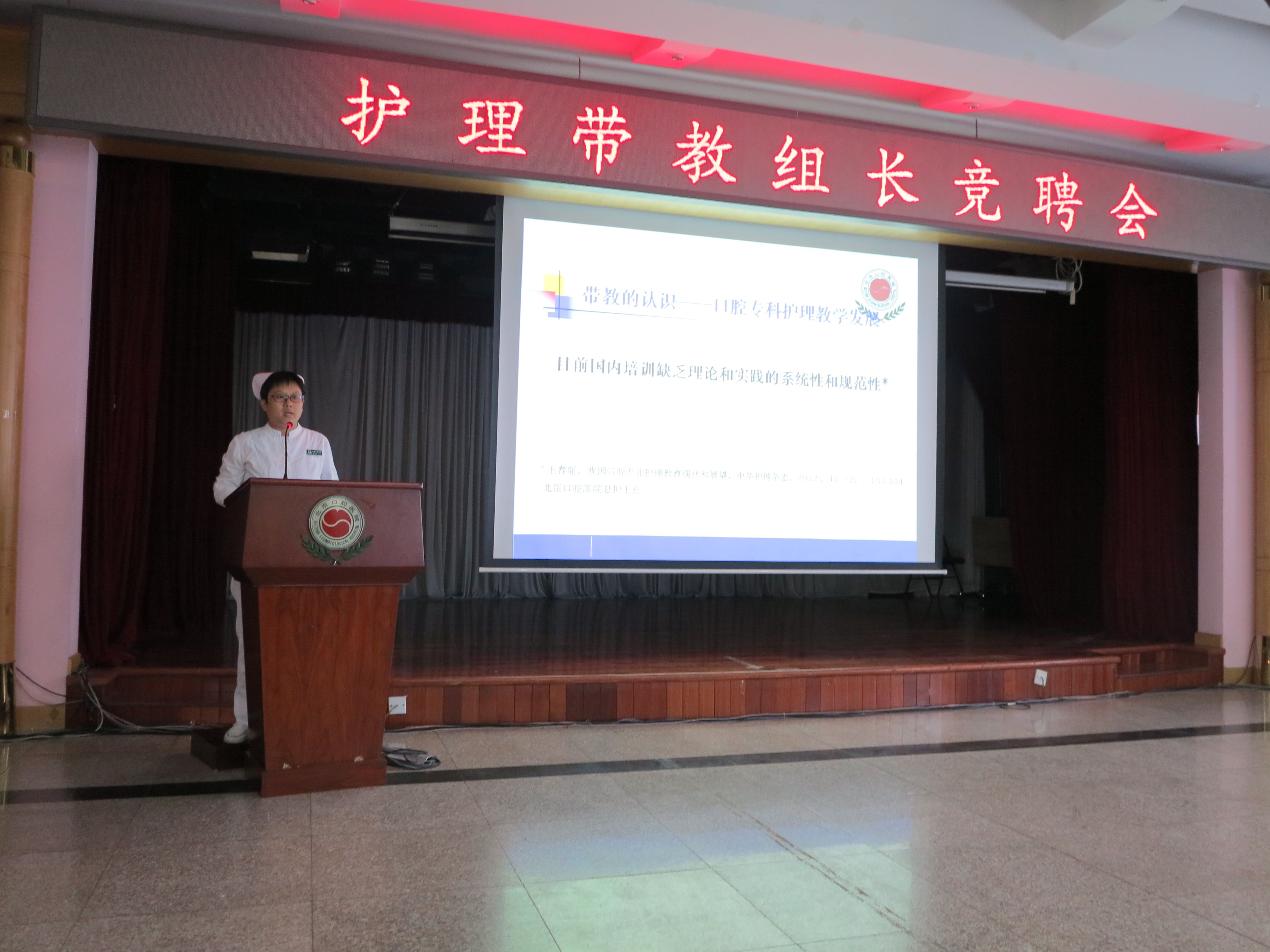 6月12日下午,北京口腔医院召开了由护理部组织的“护理带教组长竞聘会”,护理部主任、护理质控组及各科室护士长作为评委参加了此次竞聘会。