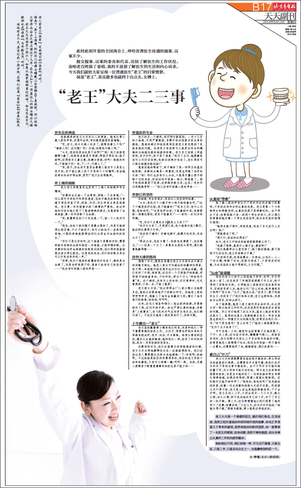 【北京青年报】“老王”大夫二三事(2015年3月12日B17版)