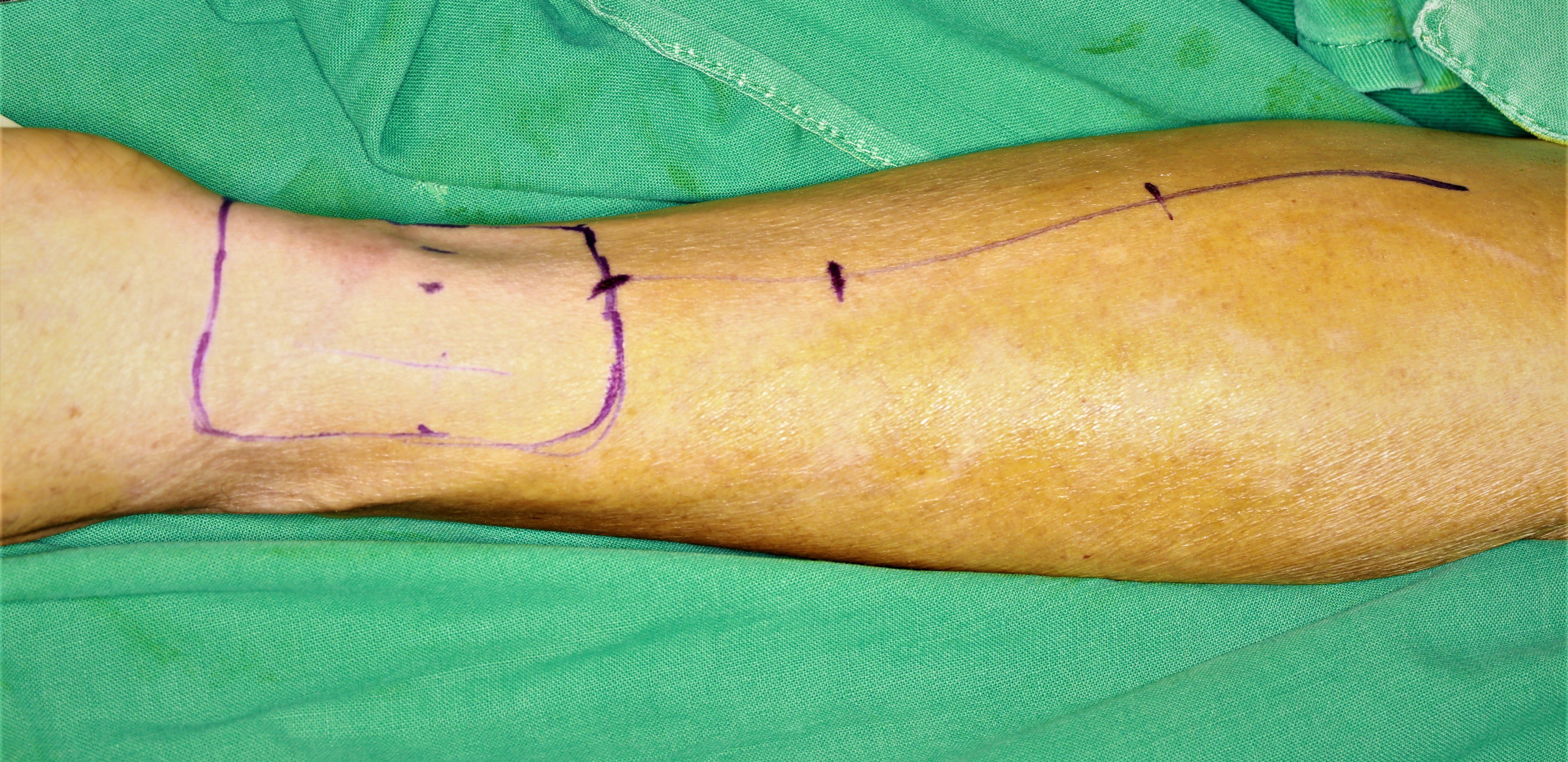 一、头颈部恶性肿瘤的综合治疗以及恶性肿瘤治疗后功能整复。针对各类口腔癌,尤其是中晚期口腔癌指定的个性化治疗方案。在进行肿瘤根治性治疗的基础上同期利用各种游离组织瓣移植修复完成缺损的一期修复。(图为前臂皮瓣与背阔肌皮瓣术前设计)