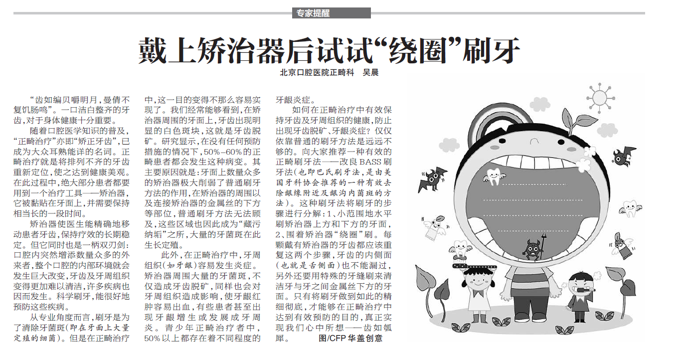 【北京日报】戴上矫治器后试试“绕圈”刷牙(2015年8月14日第19版)