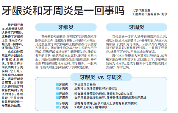 【北京晚报】牙龈炎和牙周炎是一回事吗(2015年8月14日第50版)