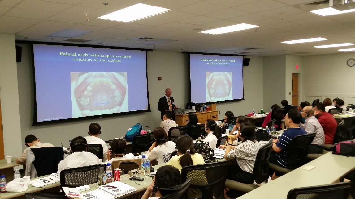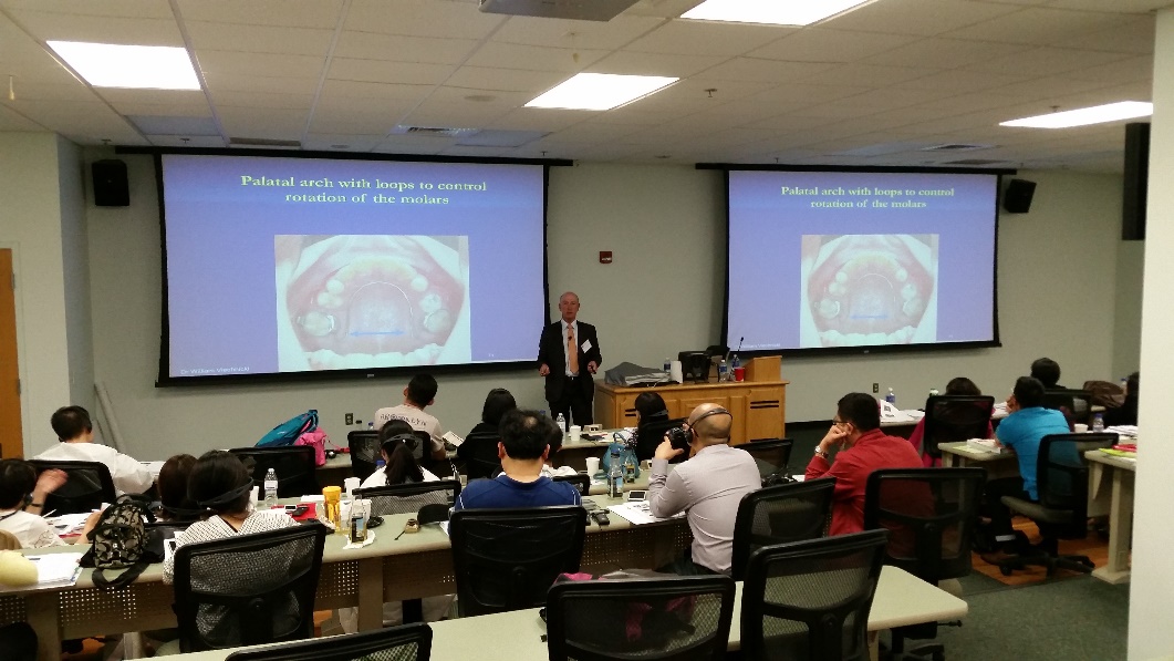此次美国天普大学正畸高级研修课程最大的亮点是授课讲师全部为美国正畸专业委员会认证的天普大学正畸教授,培训内容采用美国住院医师培养课程,涉及了许多正畸领域的发展前沿,并融入了美国正畸医生的治疗理念及临床应用。作为正畸医生,我们都知道,现代口腔正畸学发源于美国,从活动矫治到目前风靡全球的无托槽隐形矫治,美国正畸的发展一直引领着全世界正畸的发展。近三十年来,正畸各项矫治技术在我国百花齐放、百家争鸣。但是,在中国,正畸医生的很多理念和临床技术还有待提高。因此,我国正畸医生有幸在国内聆听到原汁原味的美国正畸医师培训课程,并实地去美国著名大学参观、学习临床专业培训,是难得一遇的好机会。去年11月份,天普大学正畸科的四位资深教授历经18个小时的奔波,来到了位于北京金融街的威斯汀大酒店,为来自我国五湖四海的三十五位医生进行了连续5天的头脑风暴。从系统性正畸诊断策略到成人疑难错颌正畸治疗,从青少年咬合诱导到功能矫治器设计和改良,紧凑而实用的课程,让大家深刻的体会到美国正畸临床治疗的专业性和系统性。
