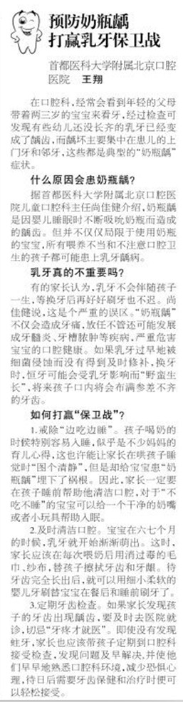 【保健时报】预防奶瓶龋 打赢乳牙保卫战(2015年9月17日 第04版)