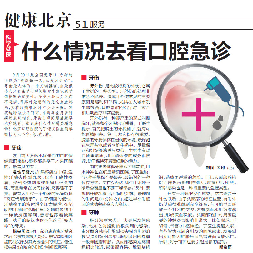 【北京晚报】什么情况去看口腔急诊(2015年9月18日 第51版)