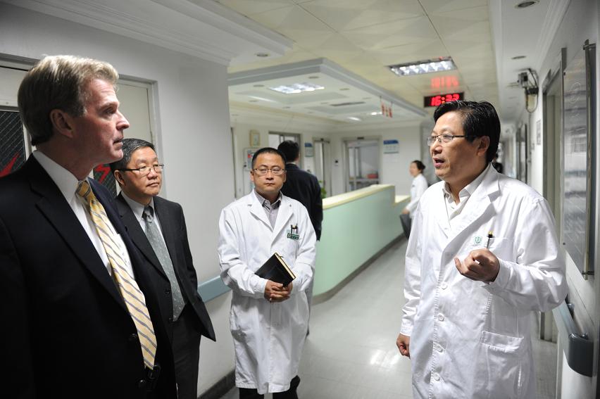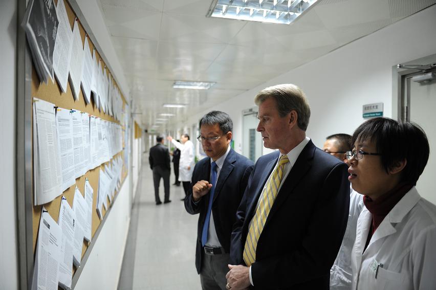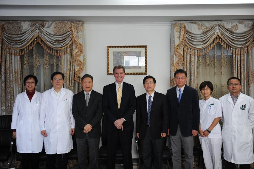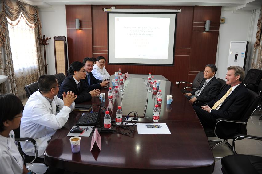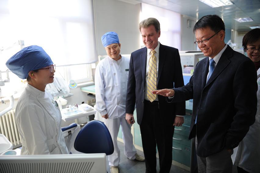 2015年10月10日,美国马里兰大学Reynolds Mark院长和毛力副院长到北京口腔医院参观访问。白玉兴院长、郑东翔书记以及科研处黄欣处长、研究所汤晓飞主任、口腔颌面头颈肿瘤外科韩正学主任、牙周科王冬青医师参加了接待。