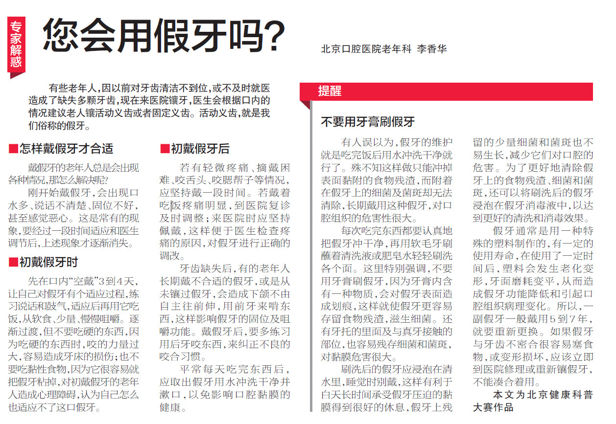 【北京晚报】您会用假牙吗?(2015年10月23日 第50版)