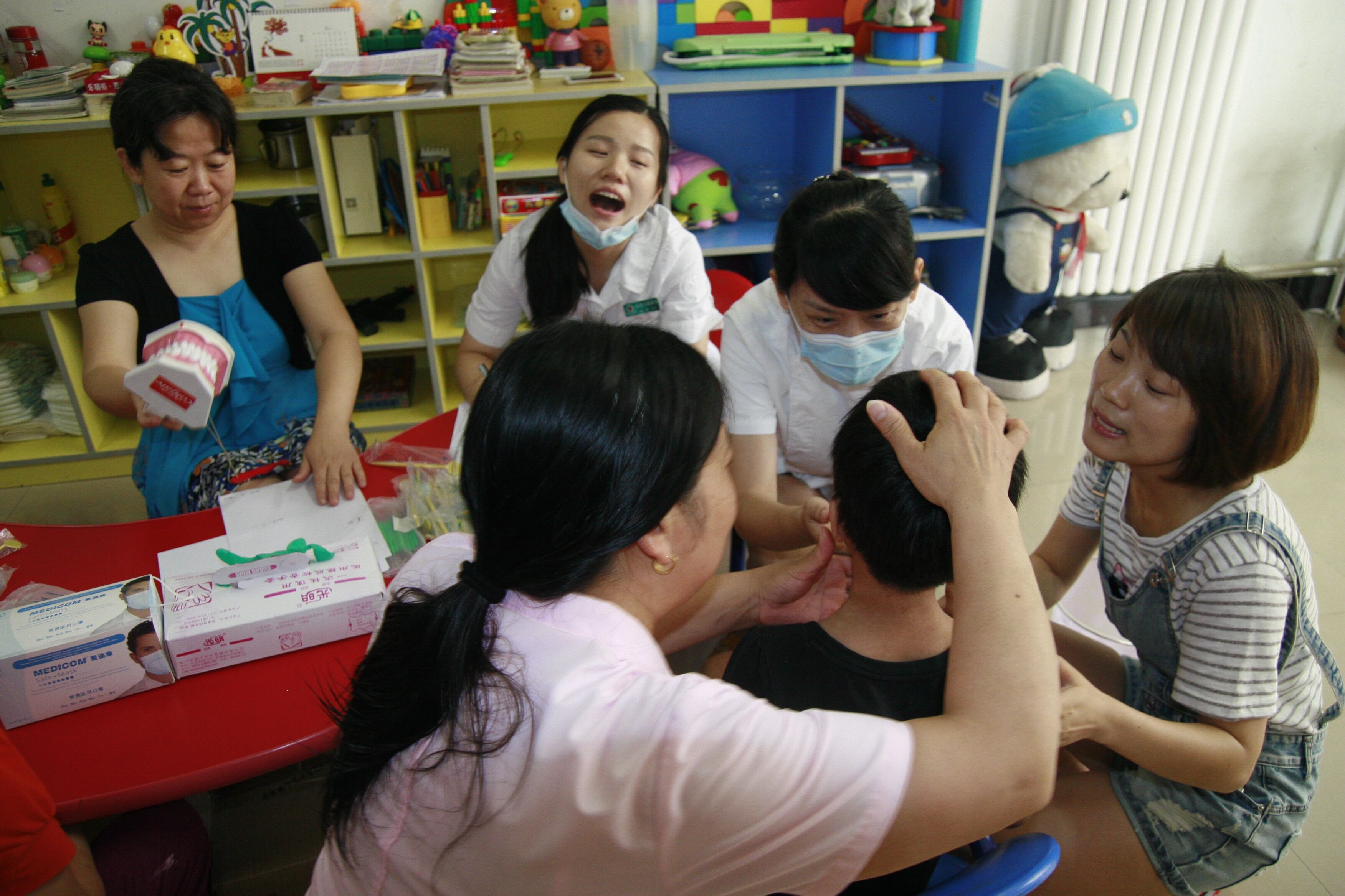 通州社会福利院主要收养了一些生理残疾、孤儿等失依儿童,并采取家庭寄养等社会化的方式,接纳了许多失依儿童,给予他们生活以及教育帮助。残障儿童的生活自理能力较差,口腔健康状况较难保证,我院正畸党支部医护人员几年来,不定期组织为福利院儿童进行义诊及口腔卫生宣教,为福利院解决了一大难题。