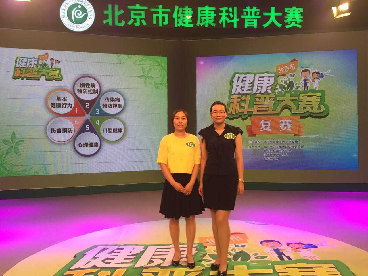 为贯彻落实《健康北京人——全民健康促进十年行动规划》,推动北京市健康科普传播工作开展,北京市健康促进工作委员会于2015 年3 月启动了北京市健康科普大赛活动。活动覆盖全市各级医疗卫生机构、部分大专院校及专业技术机构,来自68 家单位共计437 名选手报名参加了此次大赛活动。经过专家评审,最终94名选手进入市级复赛,北京口腔医院儿科刘瑶和老年科郭颖进入复赛,在六分钟的自选题目和2分钟的抽选题目中都做到良好的发挥。
