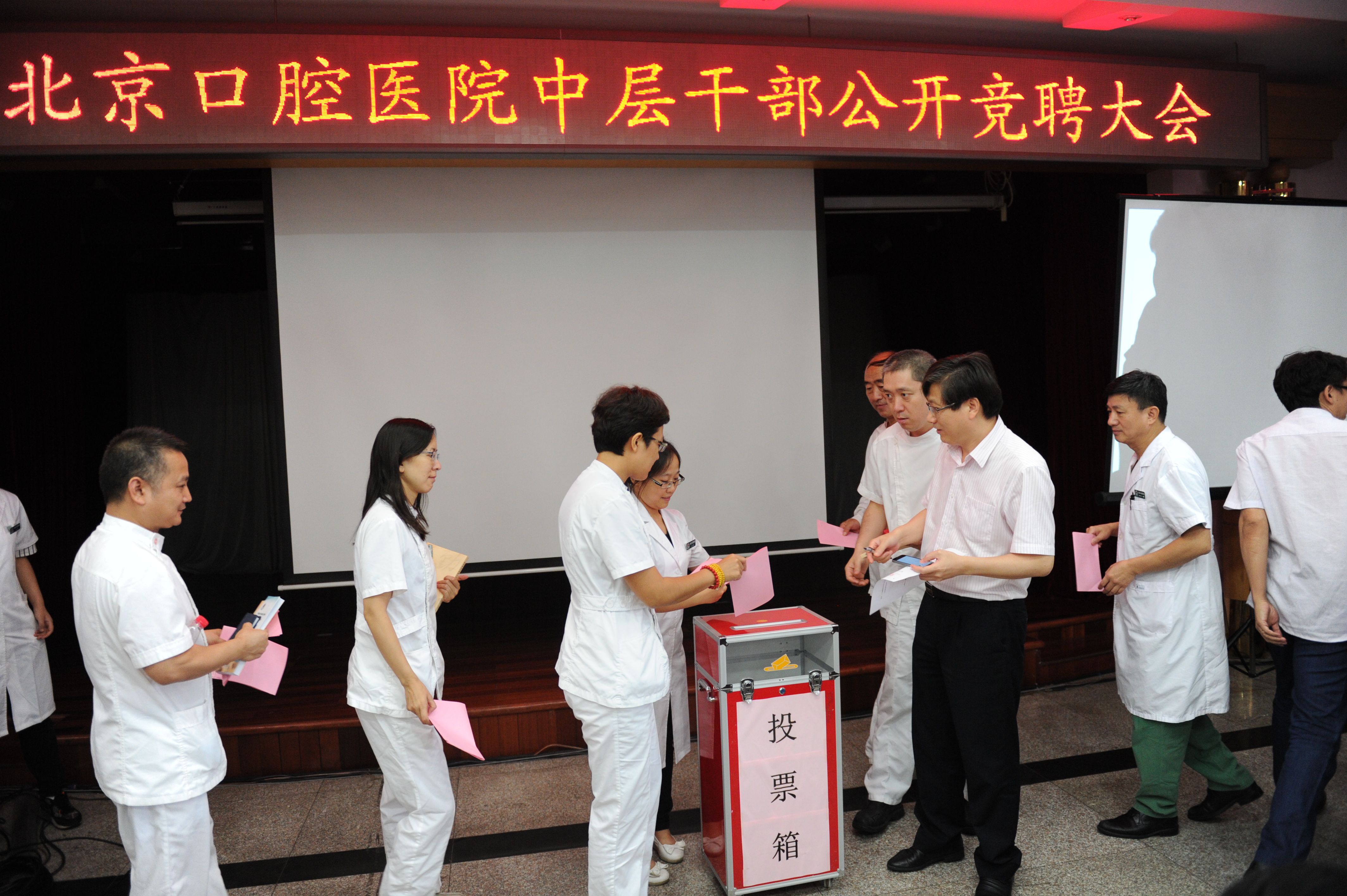 根据《首都医科大学附属北京口腔医院中层干部管理有关规定》,结合医院党委会对新增设副职岗位的决议,北京口腔医院于9月1日在多功能厅召开了部分正职和全部副职岗位的公开竞聘大会。医院领导班子成员,中层干部和职工代表出席了会议,此次会议由党委副书记刘淑敏主持。