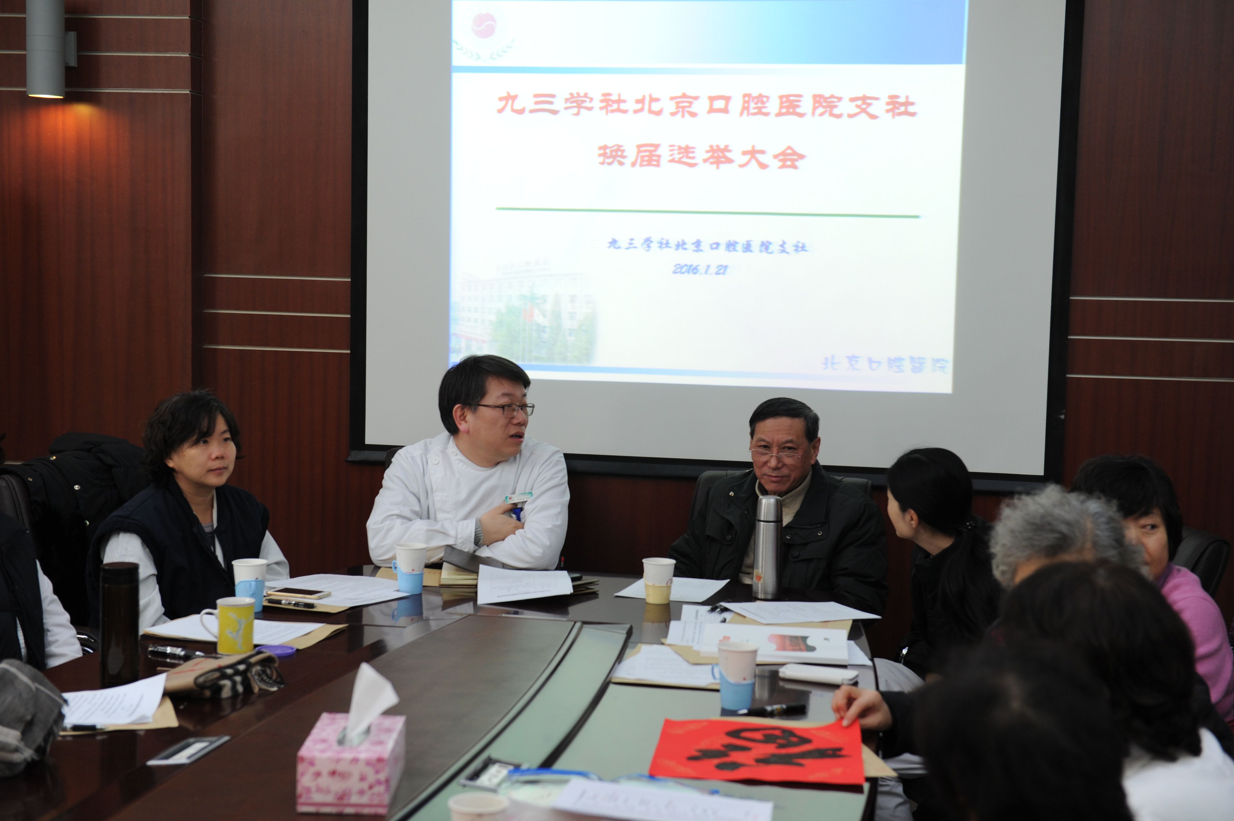 2016年1月21日下午,北京口腔医院九三学社支社举行了支社换届会,16名社员参会。九三学社北京市委组织部干部刘雪梅、戴彤,九三学社东城区委副主委蒲丛、秘书长崔媛媛,党委办公室副主任陈向雯等同志出席支社换届选举会议,会议由九三学社东城区委秘书长崔媛媛同志主持。