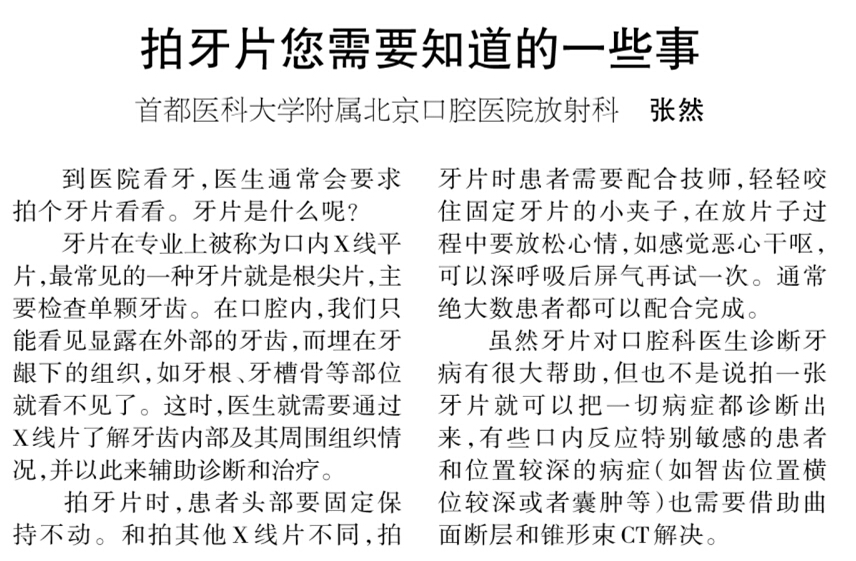 【保健时报】拍牙片您需要知道的一些事(2016年3月3日 第5版)