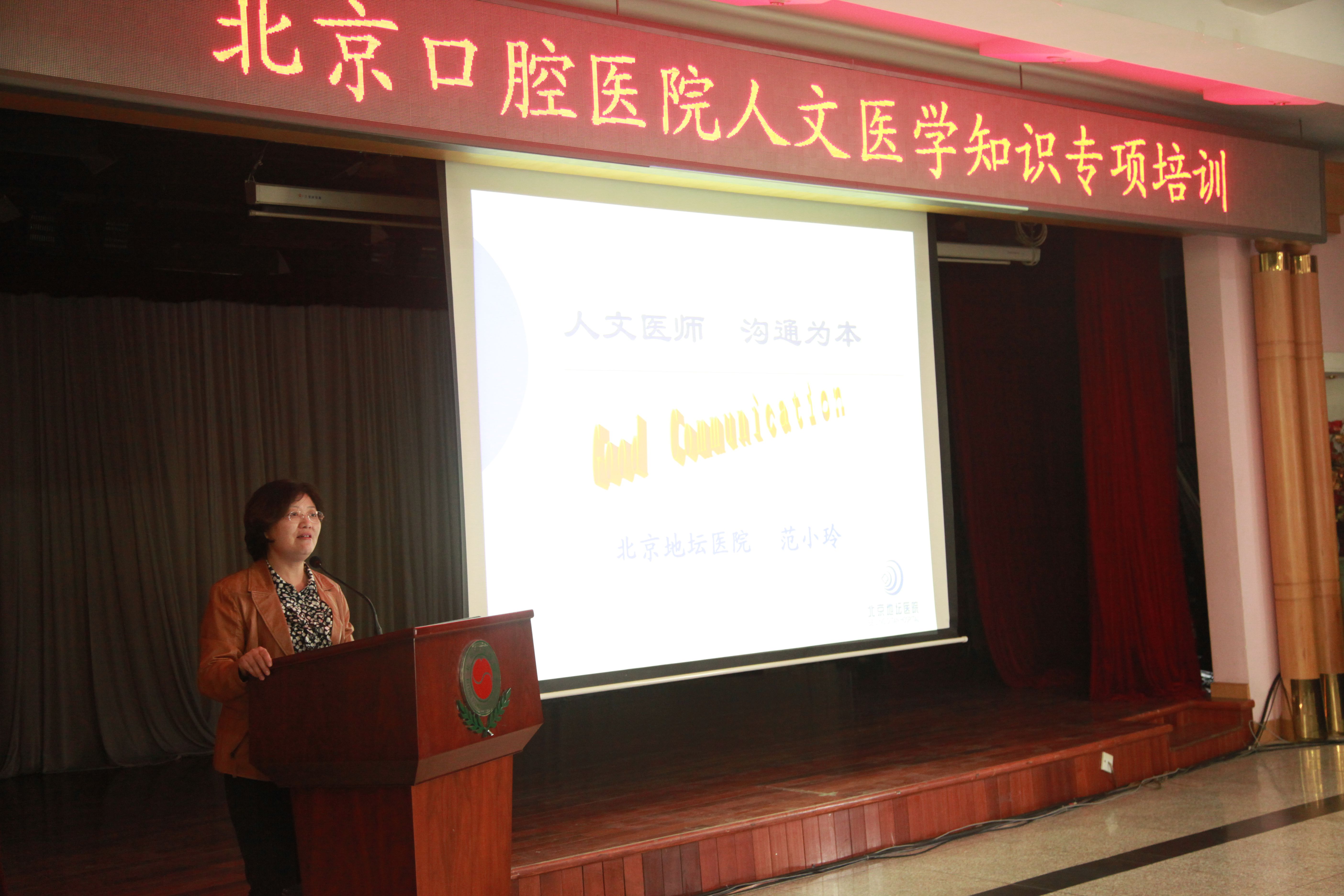 按照北京市医管局的安排,4月11日下午,北京地坛医院综合科范小玲教授为北京口腔医院的医务人员带来了一堂名为《人文医学,沟通为本》的专题培训。各临床医技科室主任,部分党支部书记及青年医师等50余人参加了培训。