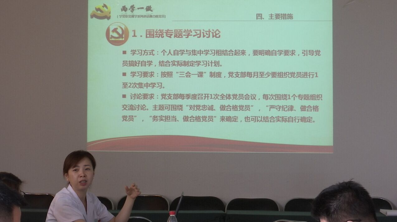 在党课中,吴缦莉副书记首先从学习的意义,要达到什么目的,解决什么问题,解决问题的措施等方面做了深刻地讲解分析。她指出开展“两学一做”学习教育,要覆盖到每一名党员,要通过学习教育强化基层党支部组织建设和党员思想政治建设,要把学习教育的过程当做查摆问题、强化整改、整体提升的过程,坚持带着问题学,针对问题改,保证学习教育与开展工作两手抓、两促进。强调各党支部是贯彻“两学一做”的组织者、推动者和实践者,要突出经常性教育特点,贯彻好“三会一课”、组织生活会、民主评议党员等制度。要避免“活动化”倾向、“割裂化”倾向和“形式主义”倾向,真正把学习教育抓实抓细,抓出成效。