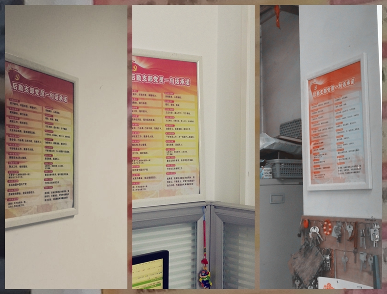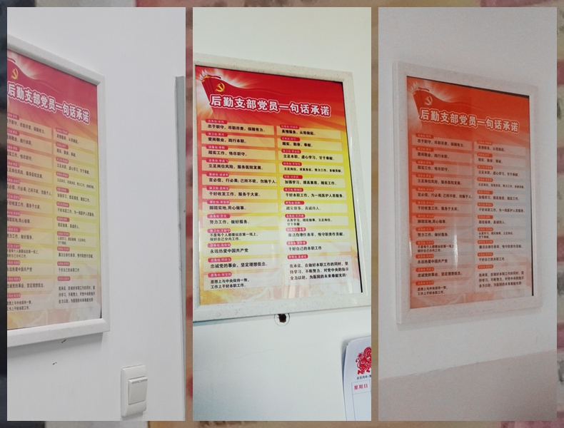 为进一步推进“两学一做”学习教育,落实“做”这一关键环节,近日,北京口腔医院后勤党支部将“党员一句话承诺”制作成镜框挂在各个班组,向广大党员群众进行公示,主动接受监督,公开践诺,监督承诺。要求每位党员以承诺鞭策自己的行动,转变工作作风,进一步塑造党员的良好形象。