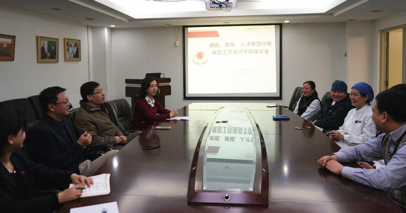 2月10日,北京口腔医院党委组织召开援疆、援藏、人才京郊行等援助工作选派干部座谈会。党委书记郑东翔、院长白玉兴以及党委副书记吴缦莉与医院近年来参加援疆、博士生服务团、人才京郊行等支援任务的选派干部进行亲切交流,送去元宵佳节的祝福和问候。