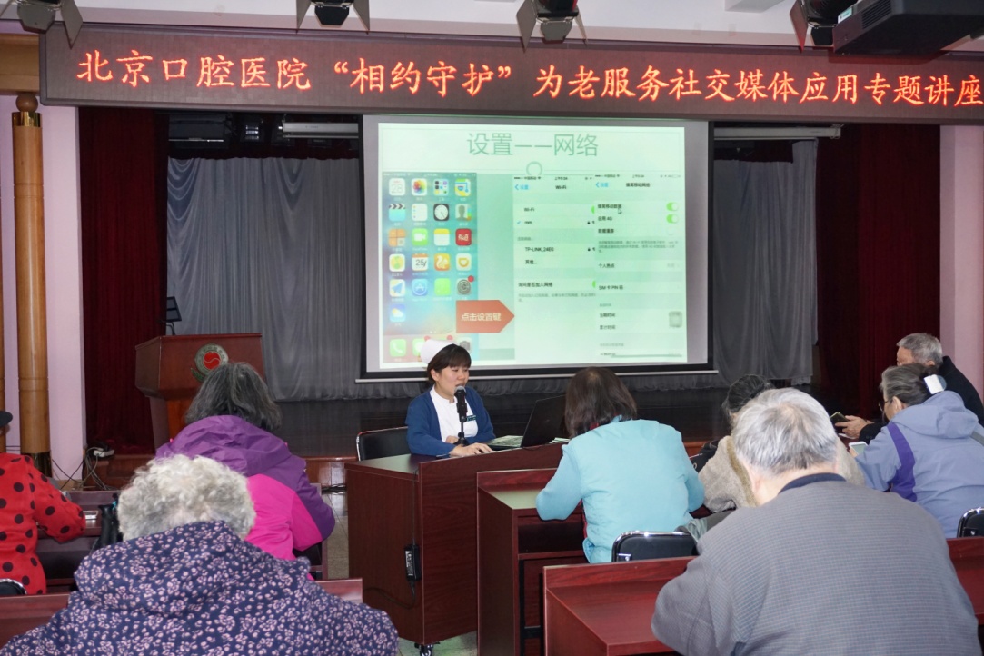 为了丰富离退休老同志精神文化生活,让更多的老同志体验现代信息工具带来的便捷和乐趣,2016年11月2日下午,北京口腔医院团委和离退办联合举办了一场题为“相约守护”为老服务社交媒体应用的专题讲座,约20名老同志参加了培训学习。